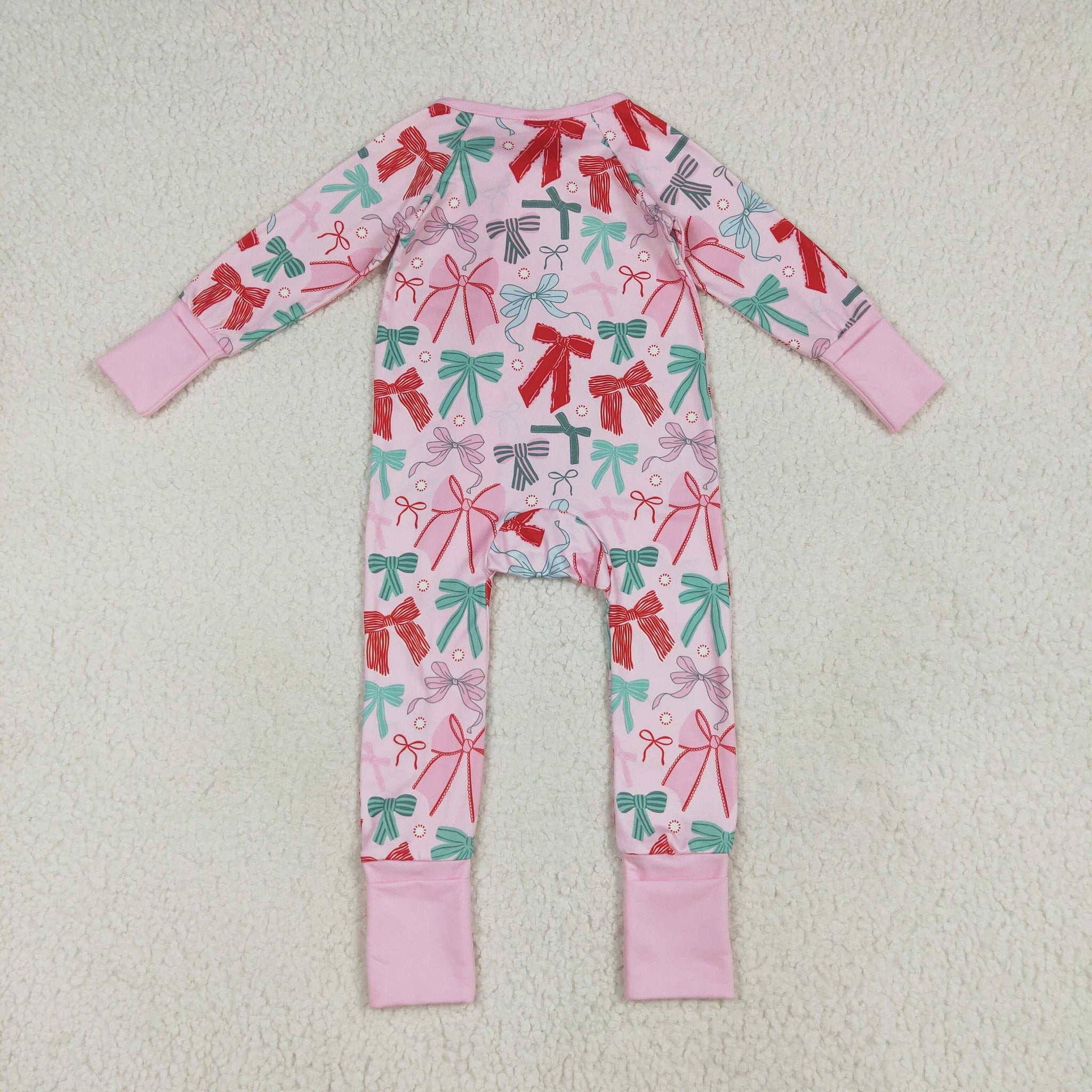 7.24 USA LR2266 baby girls red green bow long sleeve zipper pink romper