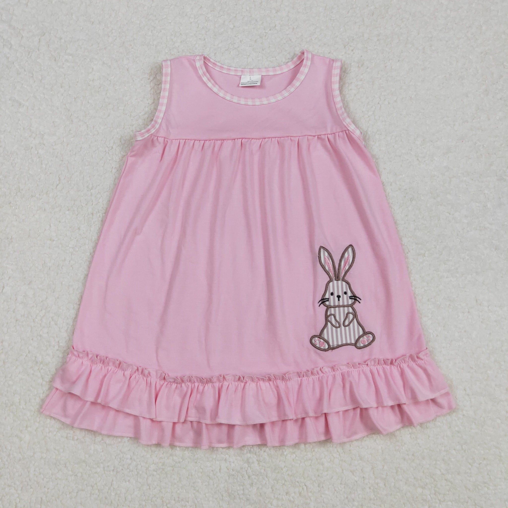GSD1671 baby Girls Easter embroidered bunny pink sleeveless Dress
