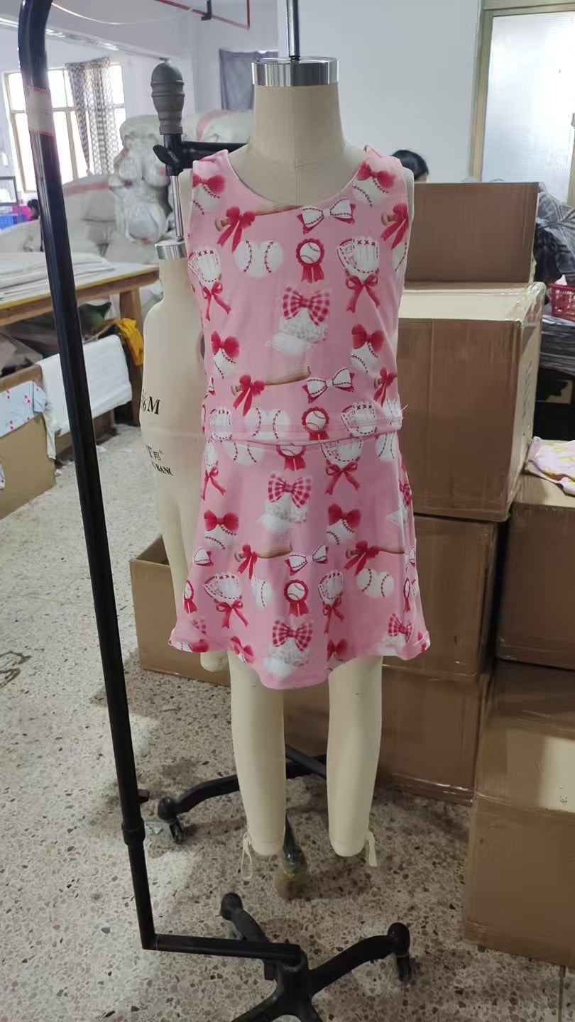 GSD2044 baby girls sleeveless pink baseball skirt outfits Yoga