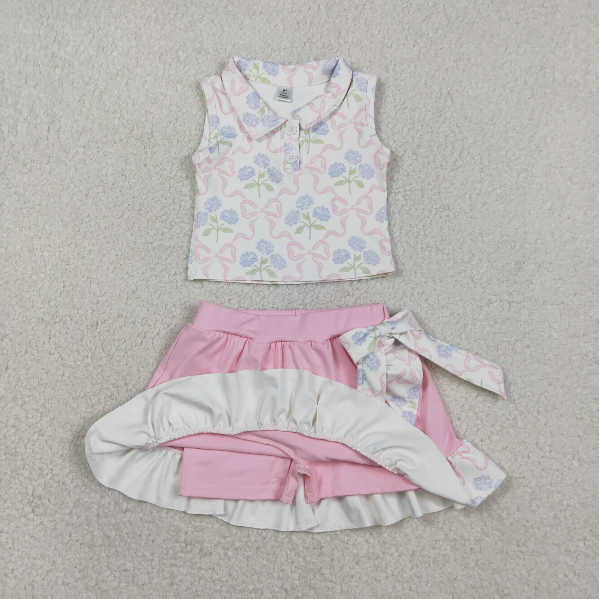 GSD3478 girls flower button pink sleeveless skirt outfits yoga