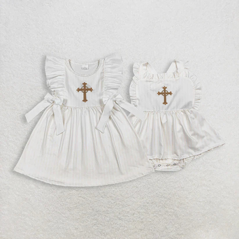Matching Baby girls Easter crossing bow clothing embroidery