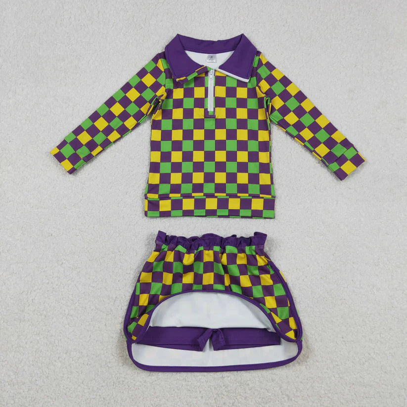 Matching Girls Mardi Gras long-sleeved long sleeve zipper outfits yoga