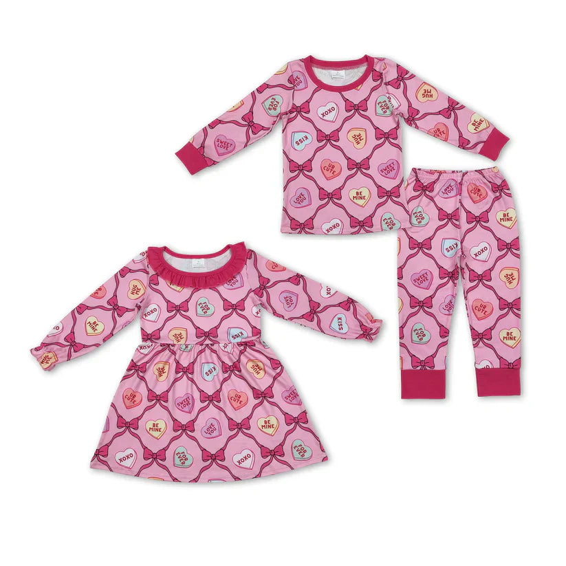 Matching Girls Valentine XOXO long sleeve dress pajamas