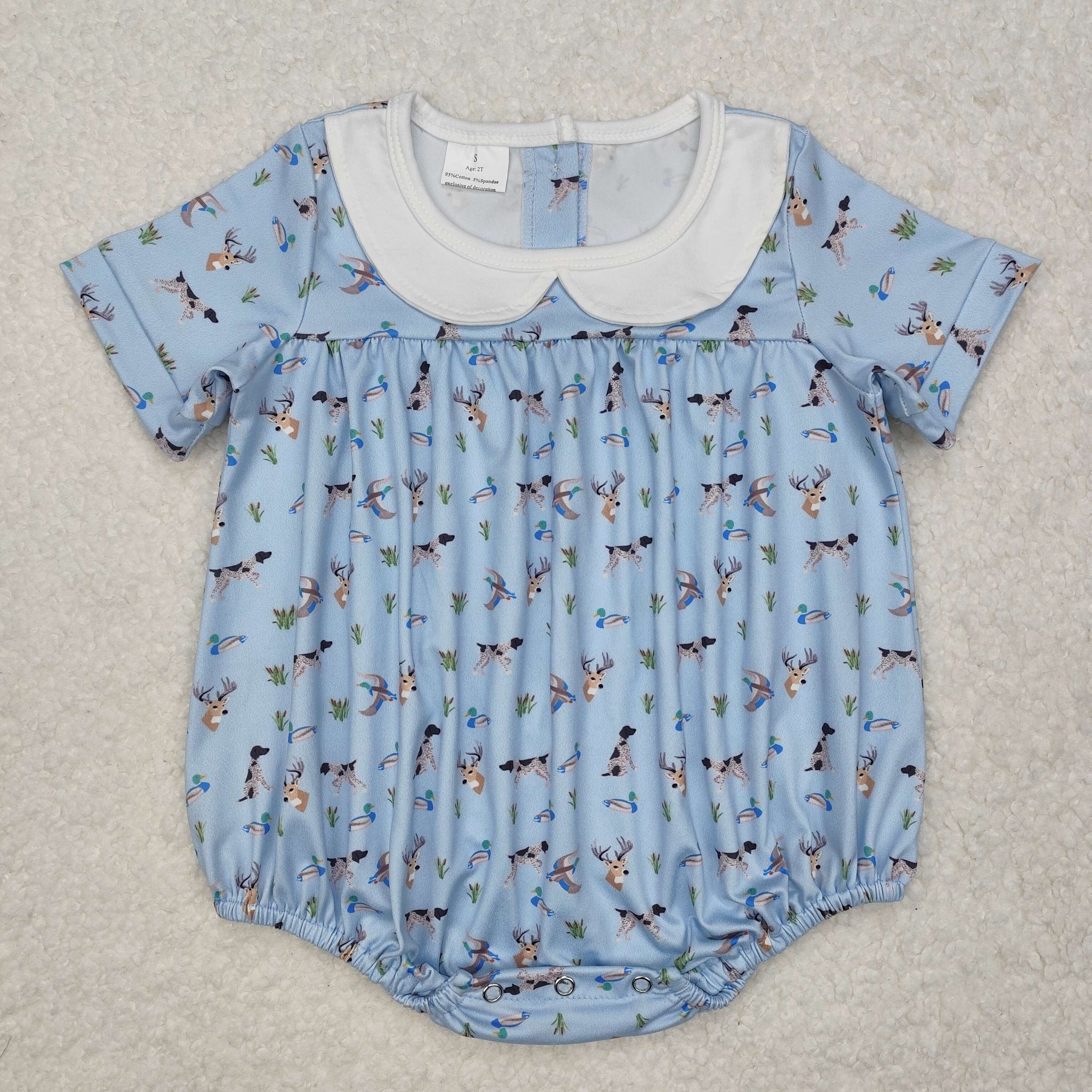 SR2275 Baby girls blue duck short sleeve romper